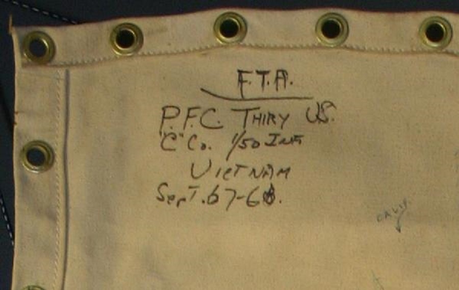 Canvas Graffiti created by Charlie Company man Scott Thiry who was killed in action on October 31, 1967. This image and many others were saved by a valuable effort of the The Vietnam Center and Sam Johnson Vietnam Archive at Texas Tech University. |