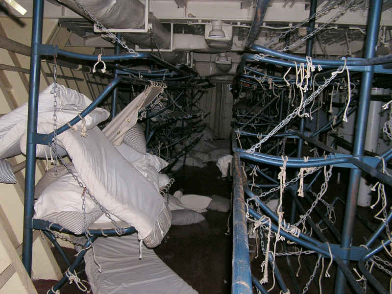 The Vietnam Graffiti Project of The Vietnam Center and Sam Johnson Vietnam Archive at Texas Tech University is a cooperative project with the U.S. Department of Transportation Maritime Administration. Created early in 2005, the project began with the intention of collecting canvas bunk bottoms from various troop transport ships used during the Vietnam War. These transports were all originally commissioned during World War II, and saw service through Korea and into Vietnam, generally being phased out during the late 60's and early 70's. Journeys between the United States and Southeast Asia generally took between two to three weeks, and were periods of intense boredom for the troops onboard. The young soldiers passed the time in a variety of ways, including playing cards, writing letters home, and expressing their opinions and feelings on the canvas bunk bottom of the bunk directly above them. This "graffiti" could be anything from a simple "I Was Here" to elaborate artwork, and everything in between. These canvases provide a unique perspective on the thoughts and feelings, and the creativity, of the soldiers who served in Southeast Asia. In spring 2005, archive staff and other volunteers traveled to the USNS General John Pope docked in Suisun Bay, CA, as part of the National Defense Reserve Fleet. Almost 400 bunk bottoms were removed over a period of 5 days and returned to the archive for processing, cataloging, and preservation. All canvas bunk bottoms have been inventoried and photographed for access and viewing via the Internet. |