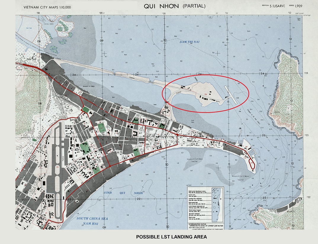 Map of Qui Nhon Harbor with the area circled where we were ferried ashore in September of 1967.
