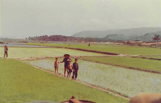 Villagers in their rice paddies along the edge of Lake Đầm Trà Ổ.